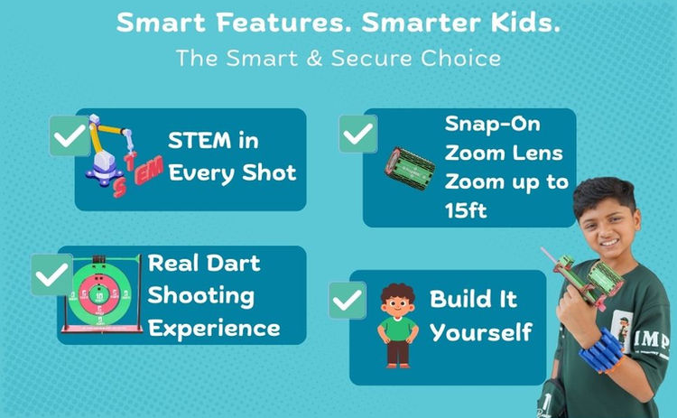 NobiSHOOT blends STEM and active play with a DIY wooden gun toy kids build themselves. It comes with a sniper scope and safe foam darts for precision aiming, focus, and patience. Designed for ages 6+ Years, it’s eco-friendly, durable, and travel-ready. A safe, engaging alternative to plastic toy guns and a perfect gift for birthdays.